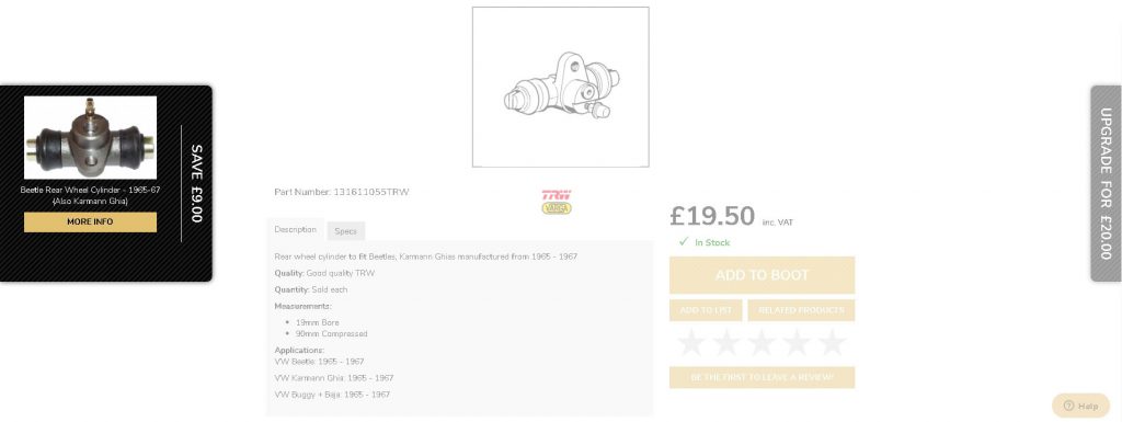 Here’s an example of a part that uses both of them below, this TRW brake wheel cylinder has a cheaper reproduction available at a saving of £9 and a top quality upgrade option for £20: