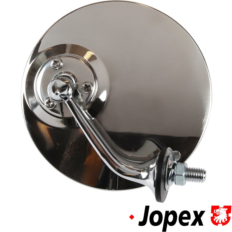 Item Name: Door mirror, round, flat glass, 4", Lucas style, stainless steel, wing or door mounting, right