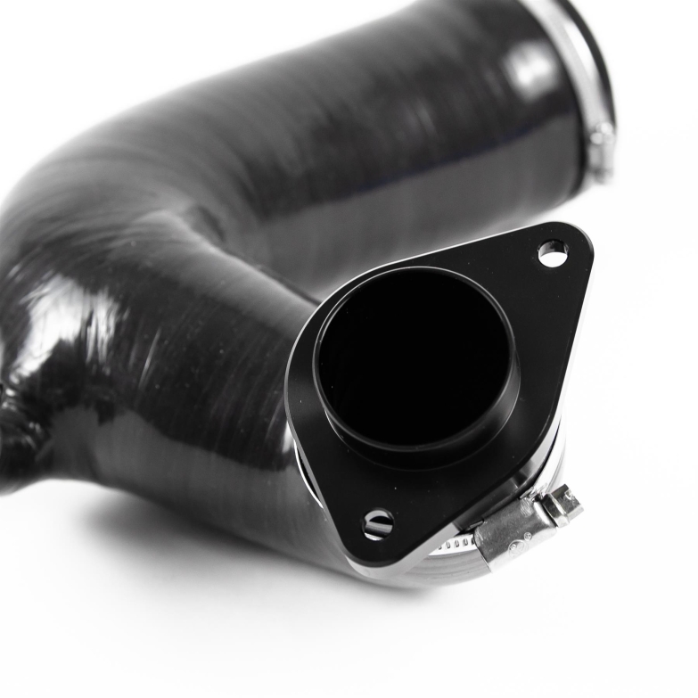 The 4-ply reinforced silicone hose provides a smoother internal path compared to the OEM plastic pipework, while the CNC machined turbo adapter increases airflow into the turbocharger. Together, these upgrades help deliver improved throttle response, increased airflow and enhanced turbo induction sound by eliminating factory noise resonators.