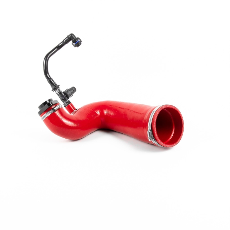 The reinforced silicone intake hose provides a smoother internal airflow path compared to the OEM plastic pipework, while the CNC machined turbo adapter increases airflow into the turbocharger. Together, these upgrades deliver improved throttle response, increased airflow and enhanced turbo induction sound by removing factory noise resonators.